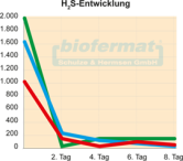 For every biogas reactor operator, H₂S production is a costly factor. With the help of biofermat granules, it is possible to significantly reduce the amount of this gas. The ammonia content in the gas typically drops to zero ppm. Multiple tests have clearly demonstrated this. Users repeatedly point out that the well-known nutrient properties of our algae preparations are not lost in the fermenter but remain active in the soil.